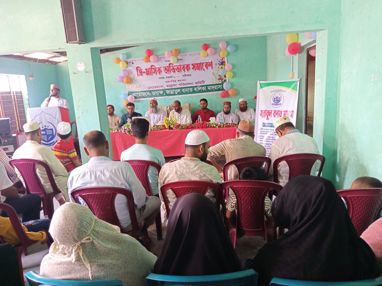 বরিশাল রুপাতলী জান্নাতুল বানাত বালিকা মাদ্রাসায় উৎসবমুখর পরিবেশে অনুষ্ঠিত হয়েছে ত্রি-মাসিক অভিভাবক সমাবেশ। শনিবার সকাল ৯ টায় মাদ্রাসা প্রাঙ্গণে অনুষ্ঠিত হয় এ অনুষ্ঠান। অনুষ্ঠানে শিক্ষক-শিক্ষার্থী ও অভিভাবকরা বিপুল উৎসাহ নিয়ে অংশগ্রহণ করেন। অনুষ্ঠানটির মূল উপপাদ্য বিষয় ছিল, ধর্মীয় পার্থিক জ্ঞানের সমন্বয়ে আধুনিক ও বিজ্ঞানভিত্তিক পদ্ধতিতে পাঠদান। শিক্ষার্থীদের পড়াশোনার মান উন্নয়ন। প্লে জোন,